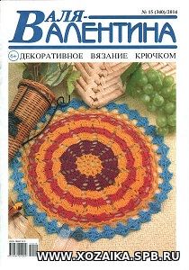 "Валя - Валентина" - журнал по рукоделию, который наполнен салфетками, выполненными в техниках ажурного и филейного вязаний. Разнообразие ярких цветов пряжи, наполняющее этот номер, не оставит равнодушными любительниц украсить свой дом эффектными акцентами - так любая ваза обретёт новый вид, если разместится на одном из изделий, представленных в этом журнале.