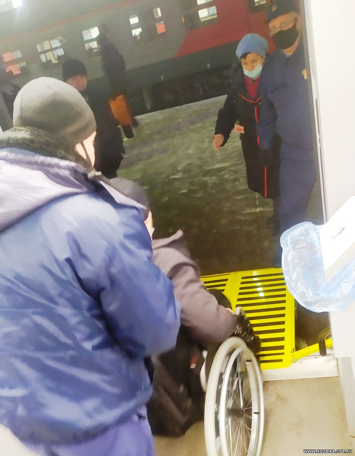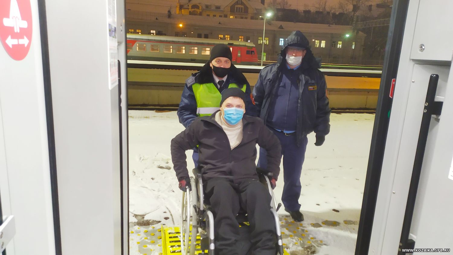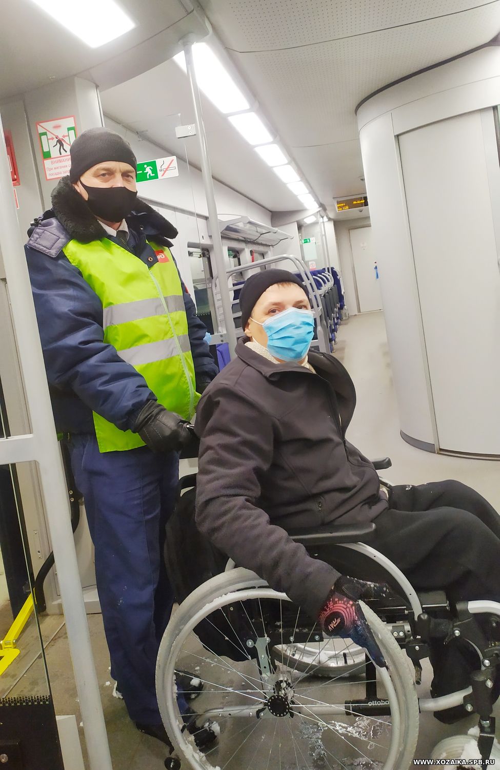 Перед тем, как поезд прибыл на место, за час мне позвонила начальник дежурной смены Финляндского вокзала и спросила, с какого вагона меня встречать. Прибыв в г.Санкт-Петербург, я увидел, что на перроне меня уже встречала бригада вокзала, а охранник поезда открыл шкаф с пандусом и, дождавшись, когда все остальные пассажиры покинут вагон, разложил его.