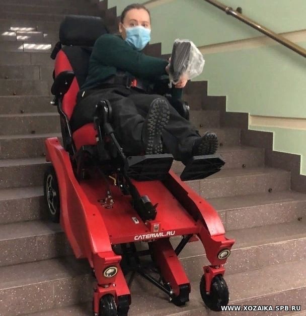 Ирина: Так называемый ступенькоход- коляска, которая сама меня поднимает по любым ступенькам и позволяет преодолевать любые бордюры, весит 98 кг плюс мой собственный вес - около 80 кг. Вместе мы - 178 кг. Нет, её я приобрела самостоятельно, за свой счёт. При моём заболевании только она мне позволяет осуществлять беспрепятственный выход на улицу с третьего этажа и также самостоятельно передвигаться по улице и магазинам. Причём обошлась она мне в 500 тысяч рублей, как, блин, Фольксваген!